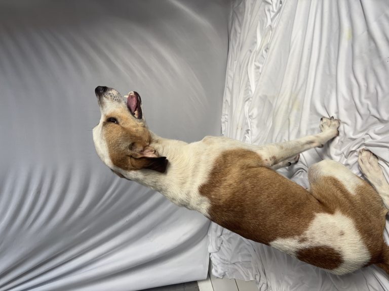 Após solicitações de ajuda, foi resgatado junto da sua irmão. Eles foram abandonados próximo ao IFBA. Passou por consulta e por exames de sangue. Esta saudável e em busca de um lar.